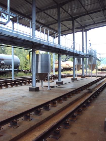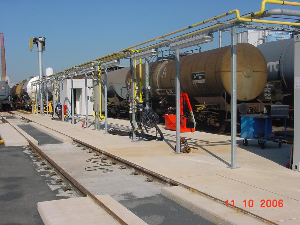 | Il est possible d’optimiser l’eau stockée en l’utilisant pour d’autres activités comme le nettoyage extérieur des wagons-citernes ou le nettoyage des essieux.. Le système de remplissage et de vidange des wagons-citernes peut être entièrement automatisé. Ainsi, le temps de remplissage et de vidange des wagons-citernes est réduit de 6 heures à 1 heure. |