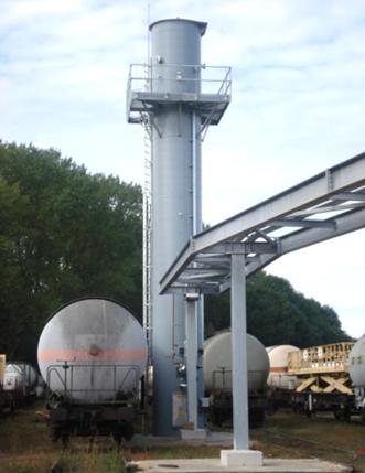 l’azote est introduit dans le wagon-gaz par la vanne de fond. La phase gazeuse est dirigée vers la torchère par refoulement. A la fin du processus d’ajout, la part de gaz diminue et un gaz de soutien y est rajouté pour
